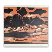 Berglandschaft von Bert Schadek. Die hochwertige Original-Holzschnitt ist mit Bleistift handsigniert. Das Blattmaß ist ca. 34,2 x 31,5 cm, die Darstellung ca. 33,3 x 30,5 cm.