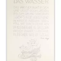 Das Wasser von Erika Hage. Die hochwertige Original-Holzschnitt ist mit Bleistift handsigniert. Das Blattmaß ist ca. 34 x 38 cm, die Darstellung ca. 24 x 35 cm.