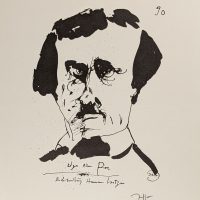 Edgar Allan Poe von Horst Janssen (1967). Die hochwertige Original-Zinkografien ist mit Bleistift handsigniert mit Monogramm. Das Blattmaß ist ca. 28 x 37 cm, die Darstellung ca. 28 x 37 cm.