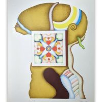 Surrealistischer Kopf* von Jörg Remé (1971). Die hochwertige Original-Lithografie ist mit Bleistift handsigniert, nummeriert und datiert. Das vorliegend Blatt ist Nr. 82 / 100. Das Blattmaß ist ca. 50,5 x 65,5 cm, die Darstellung ca. 42 x 55 cm.
