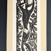 Wassertäger von Kurt Janitzki. Die hochwertige Original-Holzschnitt ist mit Bleistift handsigniert. Das Blattmaß ist ca. 17 x 35,5 cm, die Darstellung ca. 12 x 33,5 cm.