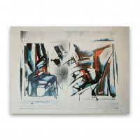 Gastmahl von Madleine Mantel (1990). Die hochwertige Original-Siebdruck ist mit Bleistift handsigniert, nummeriert, datiert. Das vorliegend Blatt ist Nr. 211 / 400. Das Blattmaß ist ca. 70 x 100 cm, die Darstellung ca. 70 x 100 cm.