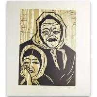 Frauengesichter von Marlene Neumann. Die hochwertige Original-Holzschnitt ist mit Bleistift handsigniert. Das Blattmaß ist ca. 34 x 37,5 cm, die Darstellung ca. 23,6 x 33,5 cm.