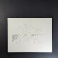 Zentauren, Dahne, Apollo von Moede Jansen (1975). Die hochwertige Original-Lithographie ist mit Bleistift handsigniert, datiert, nummeriert und betitelt. Das vorliegend Blatt ist Nr. 132 / 300. Das Blattmaß ist ca. 50 x 40 cm, die Darstellung ca. 47 x 37 cm.