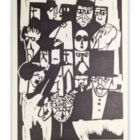 Gesichter von Roswitha Petry-Hammann. Die hochwertige Original-Holzschnitt ist mit Bleistift handsigniert. Das Blattmaß ist ca. 34 x 34,7 cm, die Darstellung ca. 23,5 x 33 cm.