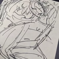 Abstrakte Figur von Rudolf Müller (1945). Die hochwertige Original-Zeichnung ist mit Bleistift handsigniert und datiert. Das vorliegend Blatt ist ein Unikat. Das Blattmaß ist ca. 29,4 x 33 cm, die Darstellung ca. 29,4 x 33 cm.