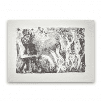Schaukelpferdreiter von Sabine Franek-Koch (1962). Die hochwertige Original-Lithographie ist mit Bleistift handsigniert, betitelt, nummeriert, datiert. Das vorliegend Blatt ist Nr. 42 / 100. Das Blattmaß ist ca. 59 x 42 cm, die Darstellung ca. 46 x 30 cm.