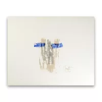 Abstrakte Collage mir Blau von Washington Riviere (1975). Die hochwertige Original-Collage ist mit Bleistift handsigniert, datiert und nummeriert. Das vorliegend Blatt ist Nr. 121 / 300. Das Blattmaß ist ca. 50 x 40 cm, die Darstellung ca. 42 x 32,5 cm.