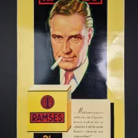 Werbeplakat Ramses Cigaretten. Das Blattmaß ist ca. 41,9 x 76,5 cm, die Darstellung ca. 41,9 x 76,5 cm.